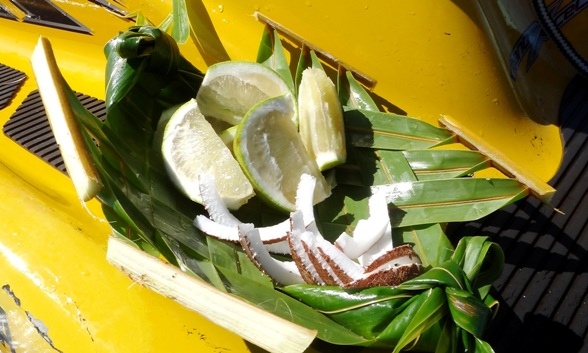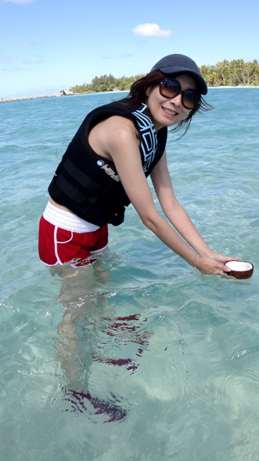 ↓ 一邊吃一邊和領隊談起很多 Bora Bora 的人和事,有歡樂的,也有些是令人感慨的,感覺像是又了解了大溪地的文化多一點點。吃過後領隊說就這樣把椰子殼徐海水漂去,不用一天椰子肉就會被螃蟹吃掉,椰子殼則會被沖回岸上。這樣好像亂拋垃圾的做法對生態環境好嗎?領隊又說椰子是天然的所以沒關係,千萬不要把像膠袋那樣的垃圾亂掉進海裏就好。