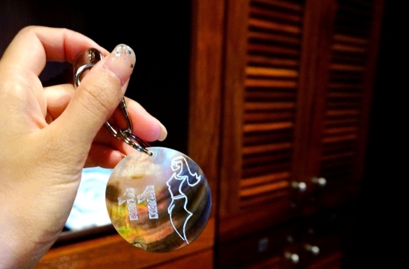 ↓ 接着拿到了儲物櫃鎖匙和浴袍,換衣服去。鎖匙扣使用珍珠貝毋造成的,貫徹波利尼西亞風格。