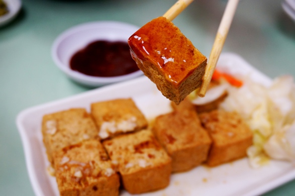 ↓ 點了麥包妹讚不絕口的「炸臭豆腐」,真的非常臭,小小塊豆腐炸得鬆脆,但內裏很乾,台式臭豆腐都是這樣的嗎?我比較喜歡像臭臭煲那種吃得到豆腐質感的臭豆腐,或是港式那種加了非常多醬料的一大塊。