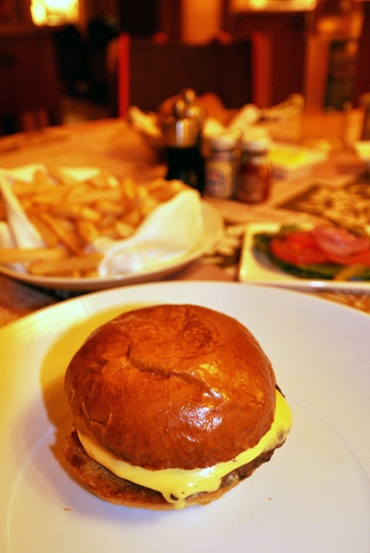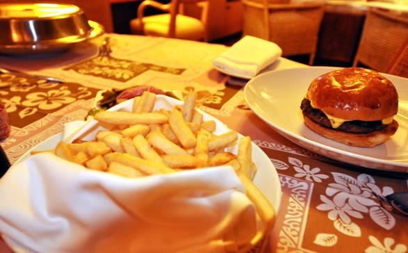 ↓ Room service 麥包選了最安全的「牛肉漢堡」(生菜、蕃茄、青瓜等蔬菜類另外分碟上),麥包說還不錯吃。