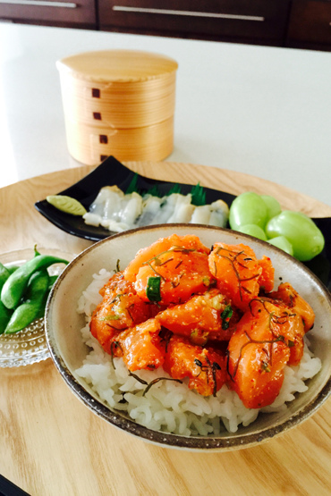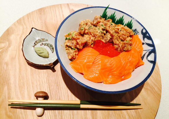 ↓ 晚餐也可以吃海鮮丼,鮭魚+鮭魚子+鮪魚蔥碎。