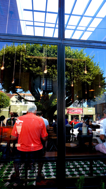 ↓ 點好餐後可自由進入餐廳內找位子坐;餐廳大致分為兩大區域,下圖看到有自然光打進來的是其一,到處都裝滿了人,看來這裏很受歡迎。