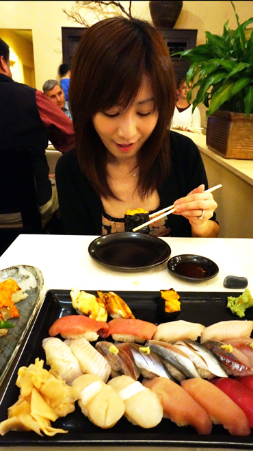 ↓之前吃過了店家特有的 omakase,也嘗試過了單點,這次想到要試一下 [Omakase Sushi] ,就是由廚師代替你決定要吃什麼種類的壽司,我有說明想嘗試比較特別的,不要拿普通鮪魚之類的上來。結果呢,我還是看到了一份鮪魚(昏倒)!究竟是侍應生沒有和廚師溝通好呢?或是廚師沒有用心聽客人的需求?那就不得而知了。至於壽司方面,新鮮程度是不錯的,也讓我嘗試到一些我平常不會點的壽司,整體來說是OK的,但就沒有什麼驚喜吧。