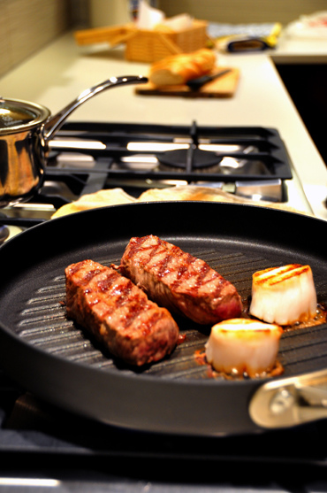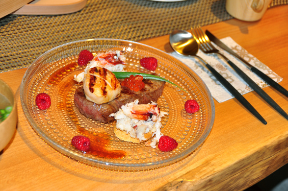 ↓ 主菜方面是「香煎扇貝牛排」,食材新鮮的話,加一點點海鹽下去煎到喜歡的熟度,再加一些鮭魚子做裝飾。