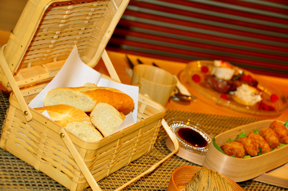 ↓ 還有一籃新鮮出爐的法國麵包(麥包一定要有米飯或麵包才行,呵呵~)
