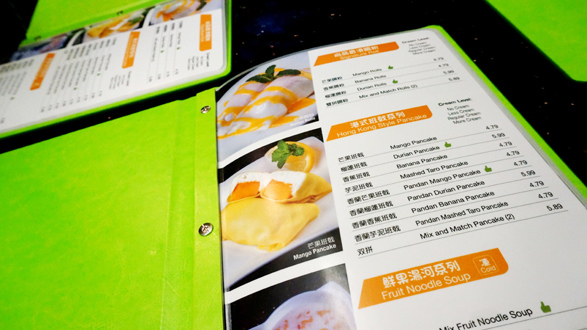 ↓ 第一晚婚宴後和朋友一起來吃港式甜品,菜單看起來有點像香港的《許留山》,看到很多不同的芒果和榴槤系列。