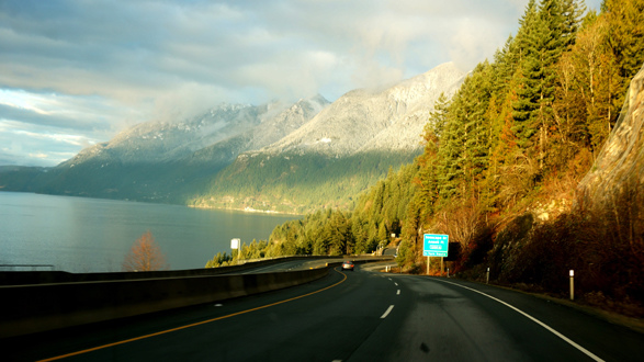 ↓ 經過沿海的公路,已經可以看到山上的積雪。