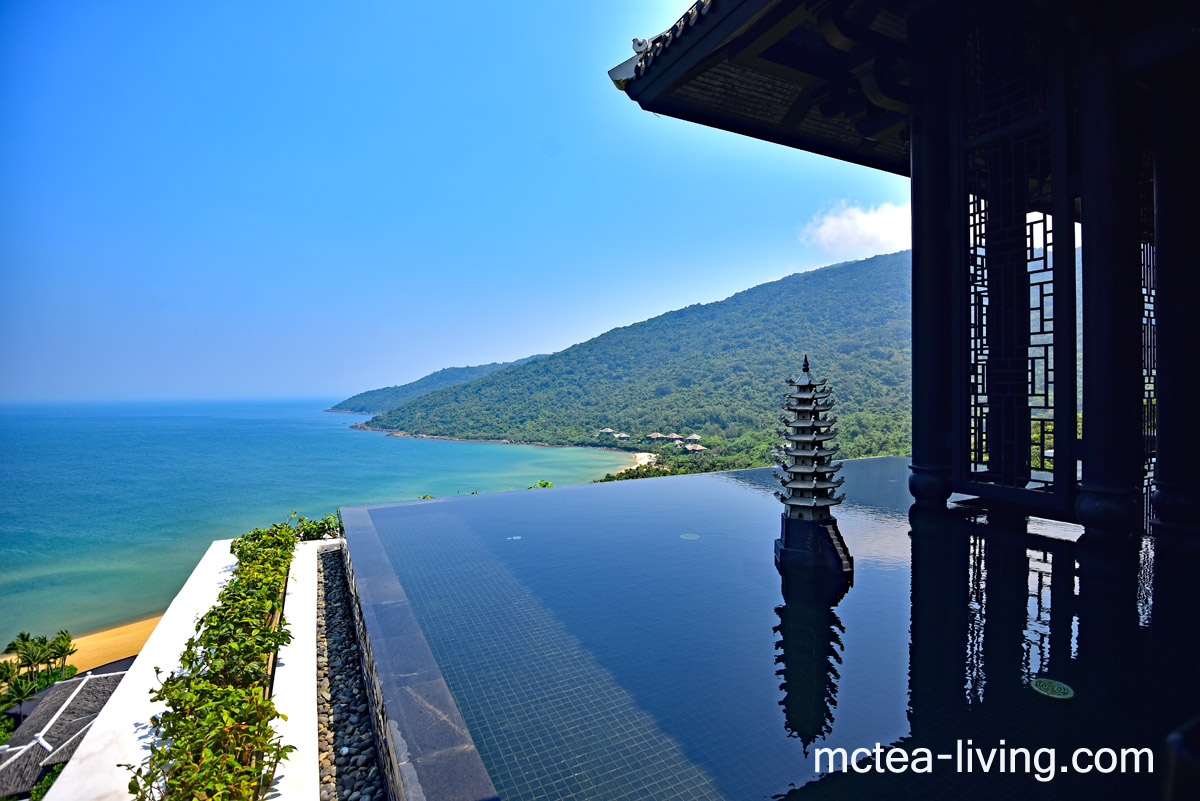 有着「最美洲際酒店」之稱的《峴港洲際陽光半島度假酒店 | InterContinental Danang Sun Peninsula Resort》,位於山茶半島,由Bill Bensley一手打造,設計理念融合了越南寺廟和法式殖民風格,以黑白為主調,配搭大膽出彩的當代藝術,開業於2012年。整個度假村有多間套房和獨立式別墅,依山而建,面朝大海,由專屬的纜車貫穿從高至低的「天堂( Heaven)」、「天空(Sky)」、「大地(Earth)」、「海洋(Sea)」四個區域,住在這裏非常療癒。開闊的海景、懸浮斗笠餐廳、以至峴港唯一的"輪軚寶寶"一星餐廳,都有着超高的討論度。