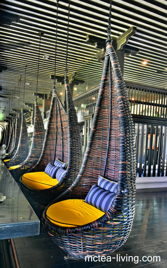 沒有傳統的高腳椅子,取而代之的是很有度假風的吊椅,設計感滿滿