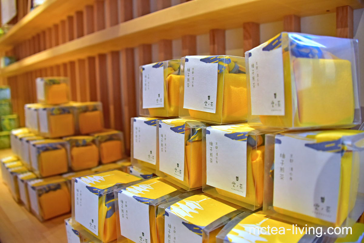 要說最為驚喜的,反而是這個伴手禮,果味茶包。每個都用富有京都特色的風呂敷包裹起來,包括了下圖見到印有八阪神社圖案的「柚子煎茶」、用了清水舞台作背景的「葡萄綠茶」、和已經售罄有着很可愛粉紅色包裝的「蜜桃烏龍」。