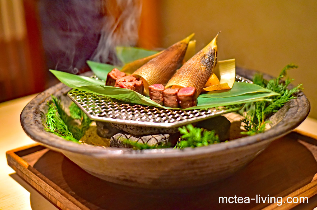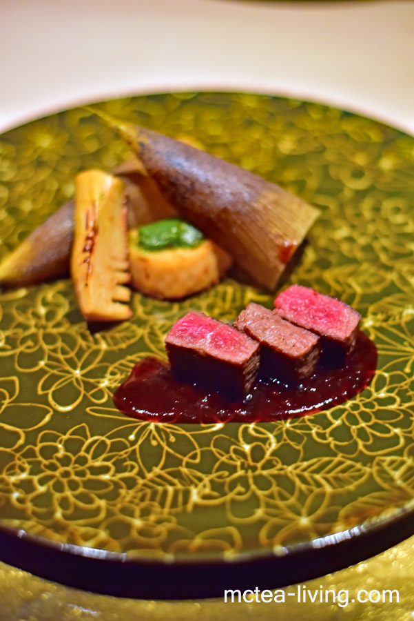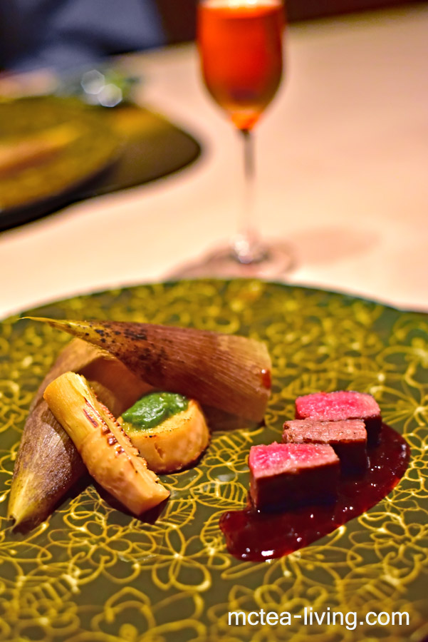 [シャトーブリアンと筍の 木の芽味噌の石焼