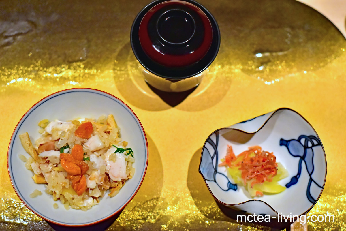另外還有海膽拌飯一起吃,很可惜的是海膽味道怪異,不確定是不新鮮,還是做了某些我不喜歡的調味,令一向很喜歡吃海膽的我也沒吃。釜飯本身是好吃的。