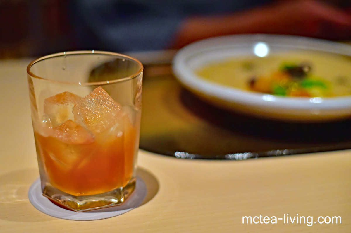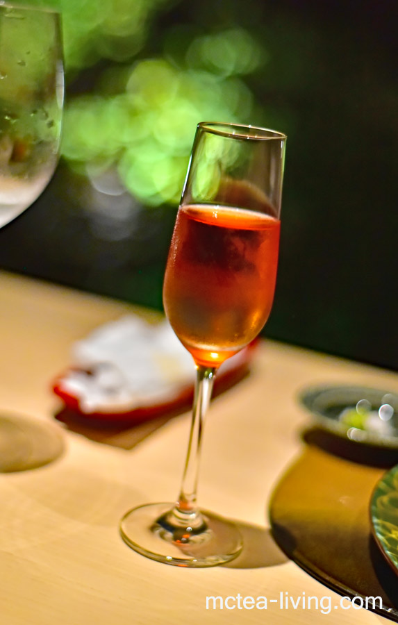 我發現這裏有茶的pairing,着實是為我們這些喜歡喝茶多於酒的人而設~快快點下去。第一杯送上來的是比較清爽的煎茶,適合配前菜開胃。