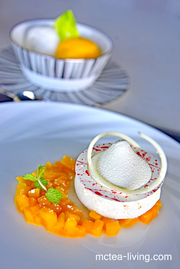 甜品點了斗笠造型的慕絲蛋糕,還不錯吃。麥包就選擇了吃椰子和芒果雪葩。