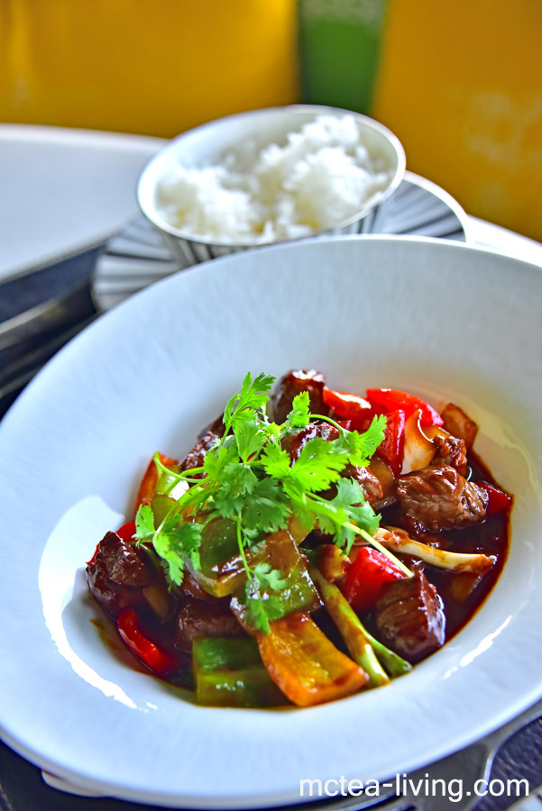 麥包的主菜是澳洲肋眼牛肉,煮得好像糖醋排骨,有點像在美國吃到那些"外國人煮的中國菜",我沒有很喜歡,但很合麥包的胃口。