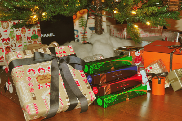 ↓ 麥包大哥由香港帶來的 Agnes b. 巧克力和我朋友送的聖誕樹吊飾。