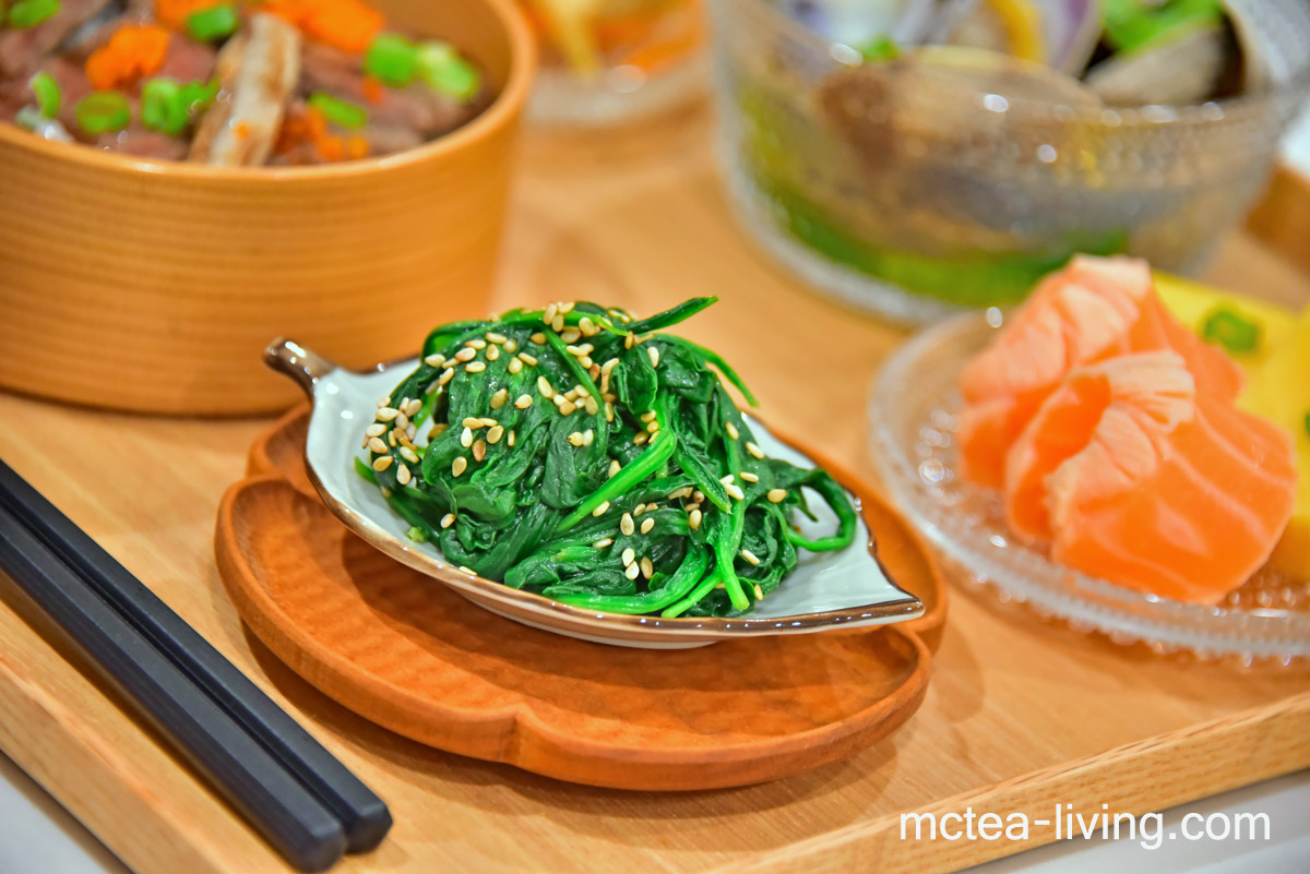 前菜第一份是《麻油菠菜》,其實做法很簡單又好吃,但在時間緊迫的情況下只好買完成的。